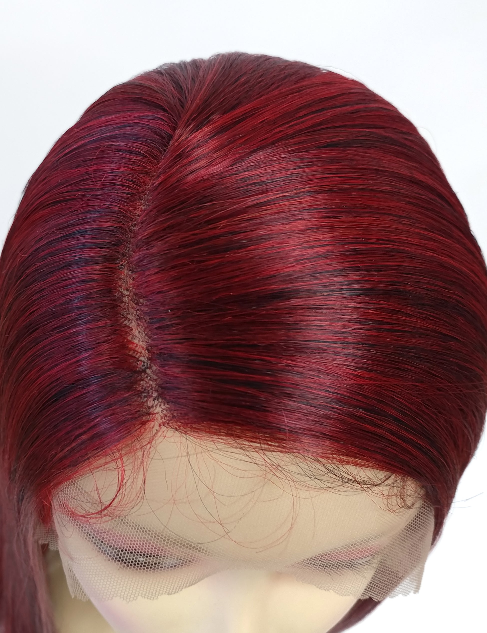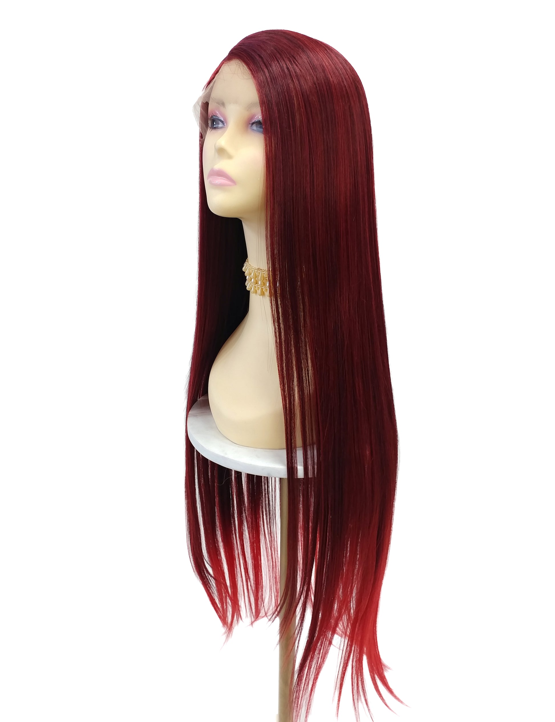 HD Lace Front Side Part Long Straight Red Heat Resistant Wig 40 Inch [Rayven-JewelRed]